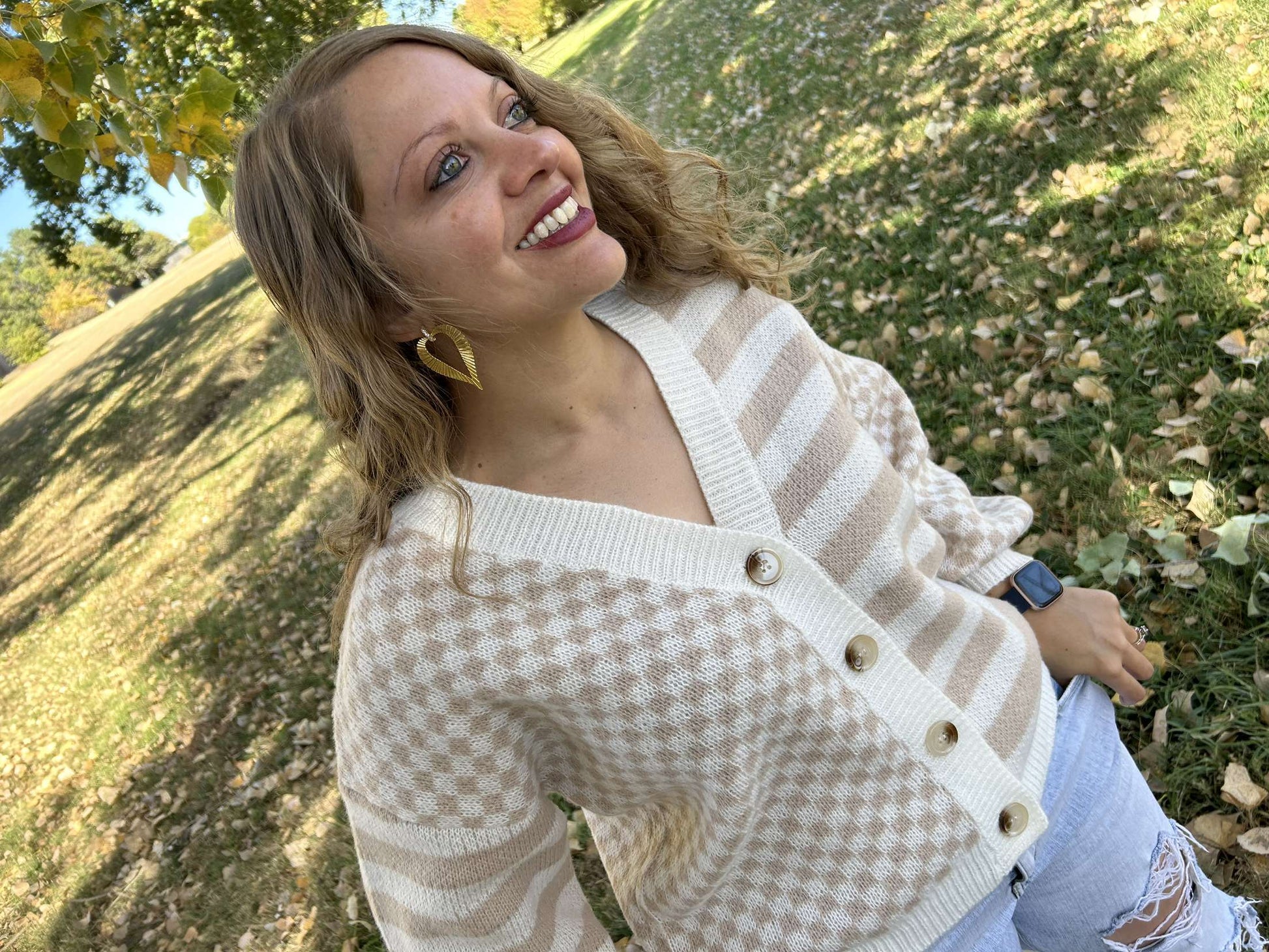 Wrap yourself in coziness in our Check That Line Cardigan and enjoy the mix of neutral checks and stripes. This ultra-soft knit sweater features a comfortable dropped shoulder and a classic button front design. Great for transitional layering, this cardi makes it easy to step out in style while staying warm!