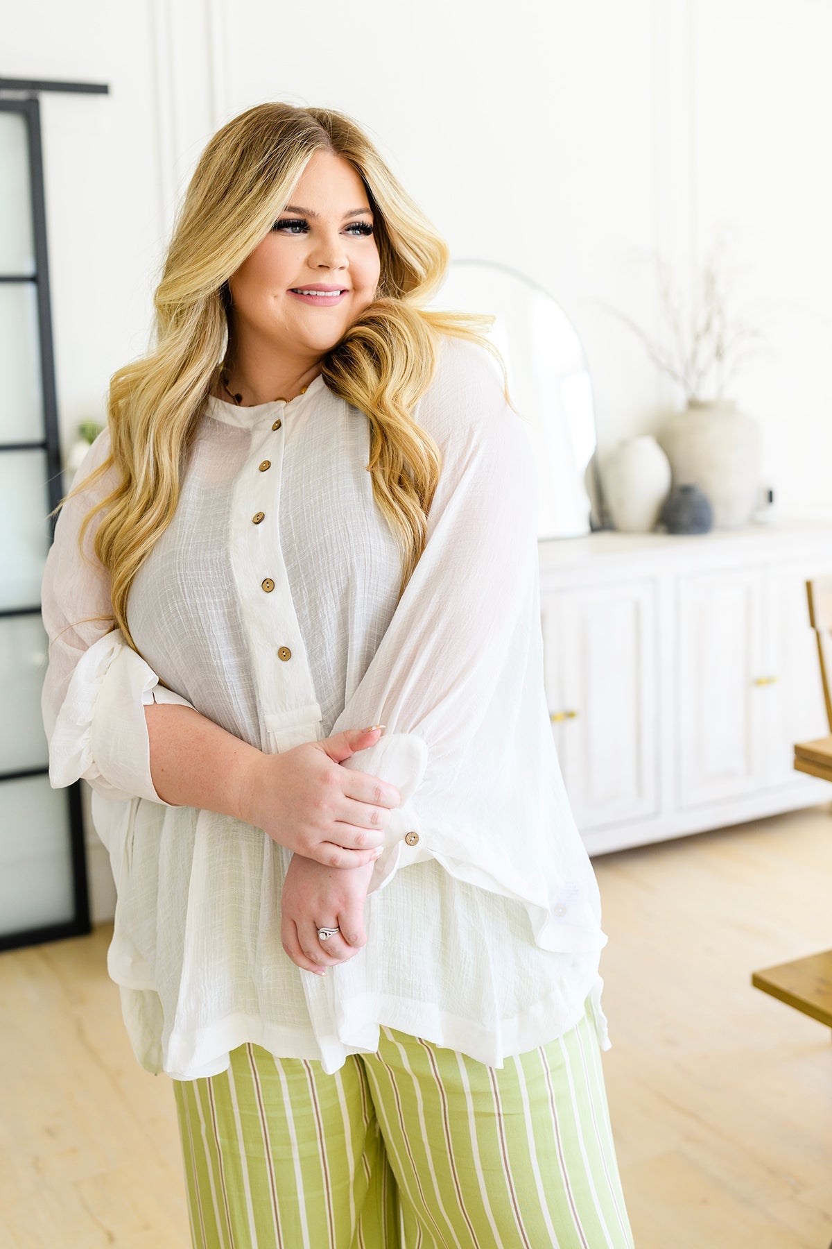 Discover new fashion heights in our Never Underrated Striped Wide Leg Trousers! Featuring a beautiful subtle striped print in soft rayon twill and a flattering high waist with a flat front silhouette, these trousers are designed to make you feel confident and stylish. With functional double button closure and elastic back for extra comfort, our trousers are sure to make you stand out in the crowd! What are you waiting for?