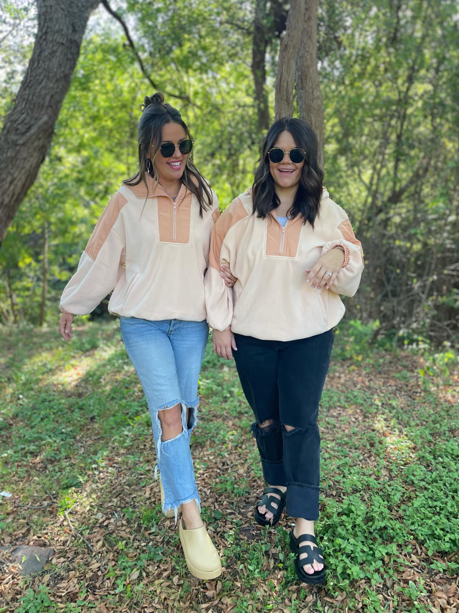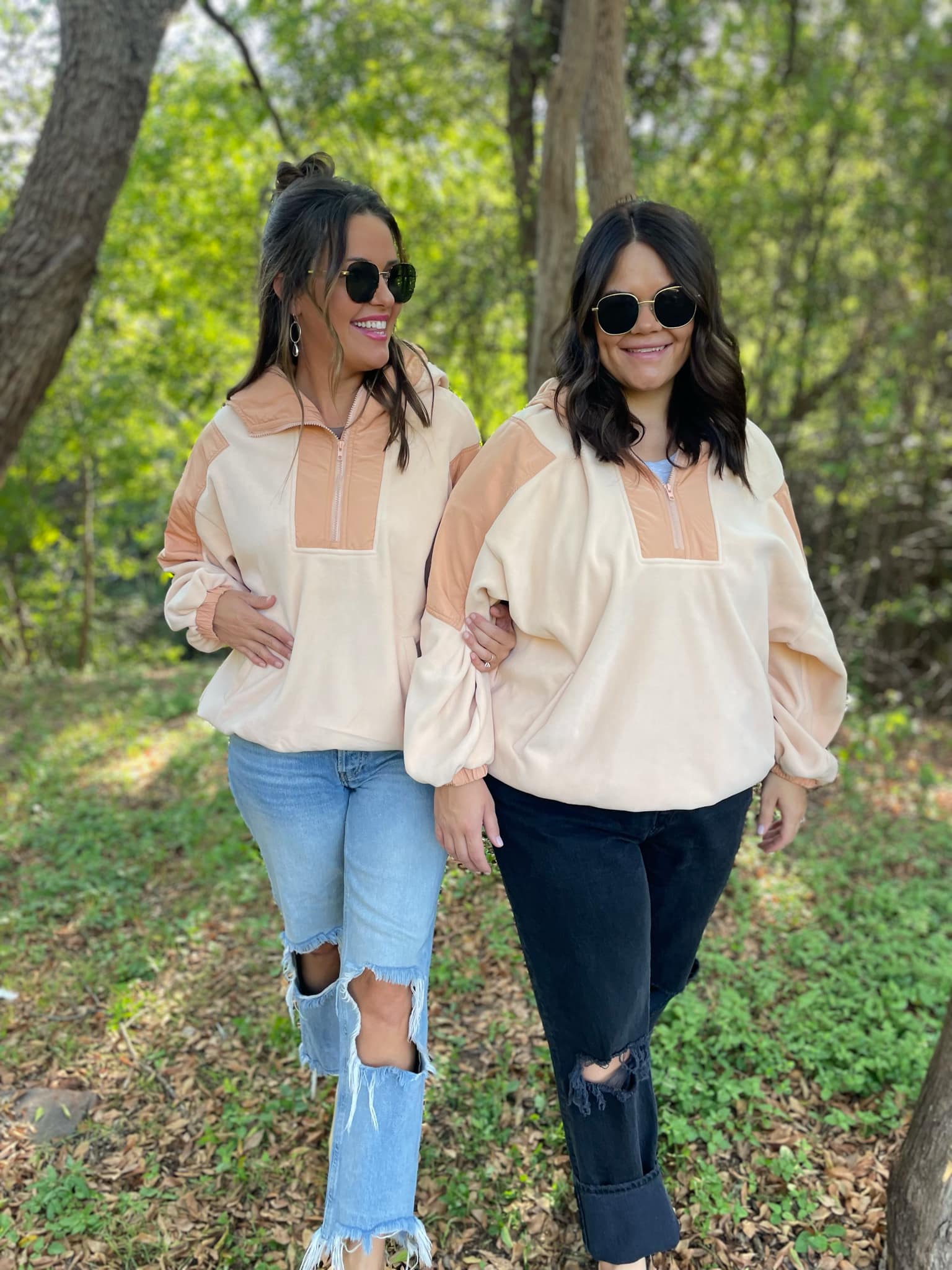 You can never have too many fleece jackets and the half zip + oversized hood makes this one a MUST! Super soft with a roomy fit and contrasting accent details.