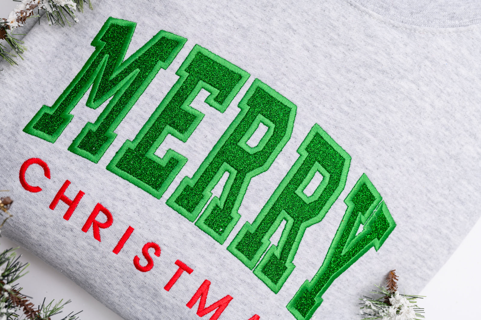 PREORDER: Embroidered Merry Christmas Glitter Applique Sweatshirt