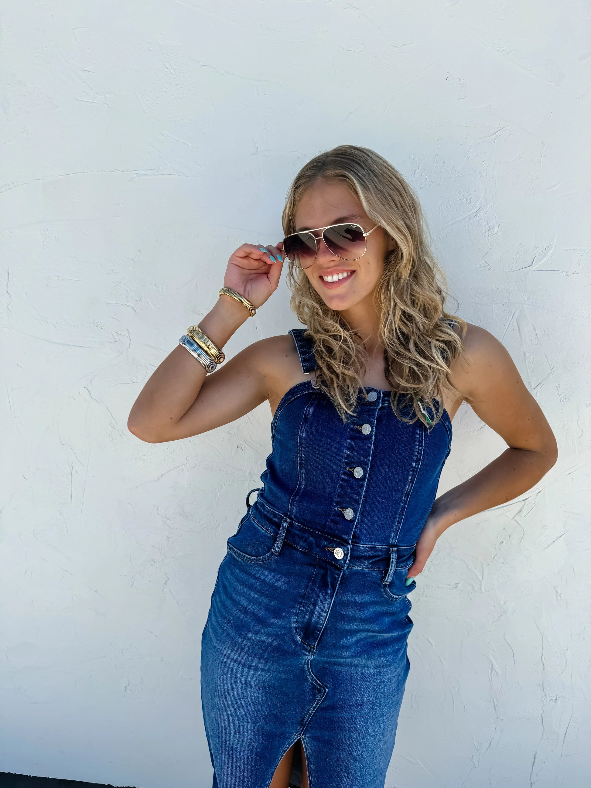 The cutest overalls we have made to date! Trust us when we say you’re not going to want to sleep on these! Such a form flattering stretchy denim that hugs curves in all the right places.