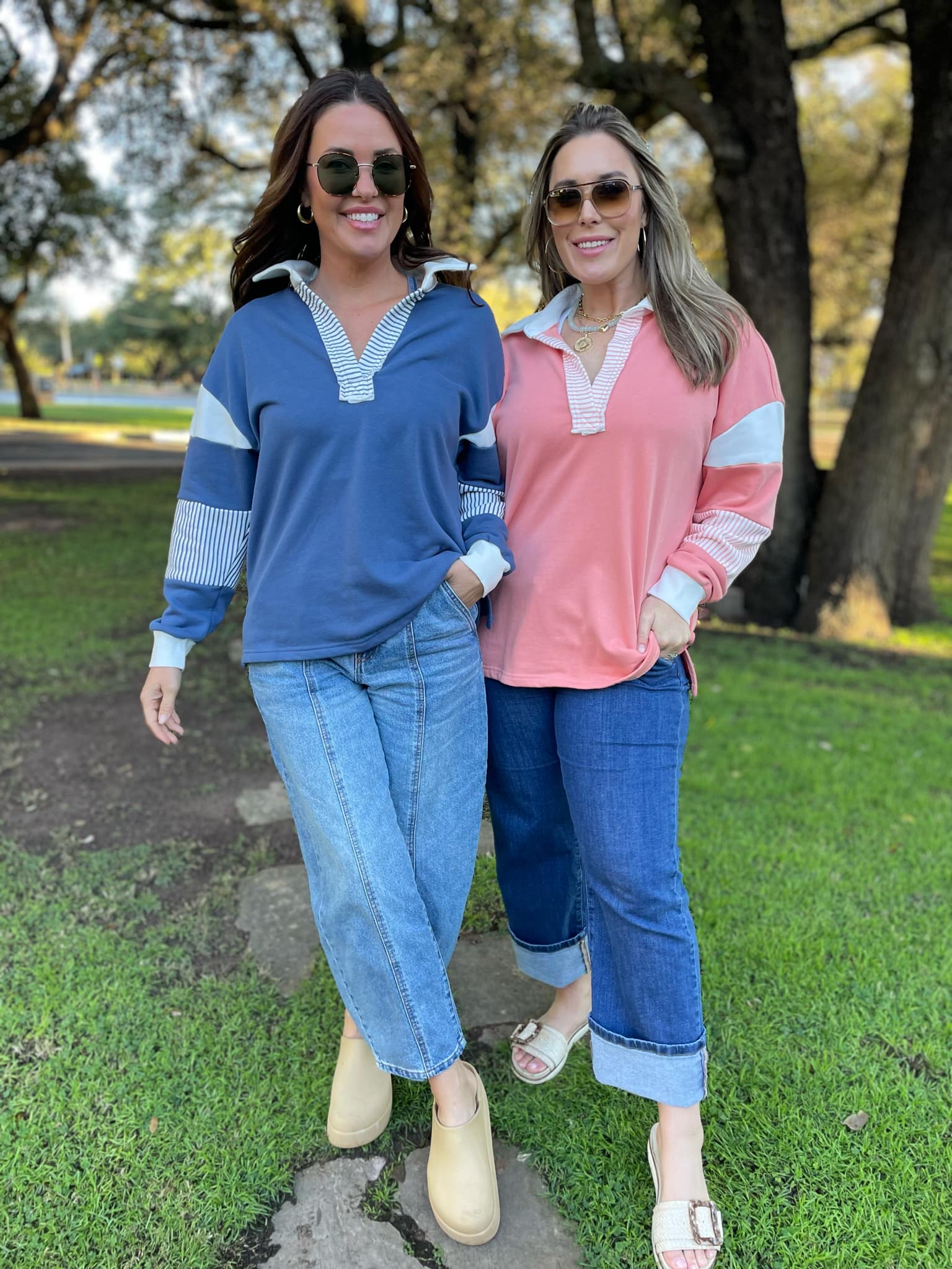 PREORDER: Stay Preppy Collared Sweatshirt in Five Colors